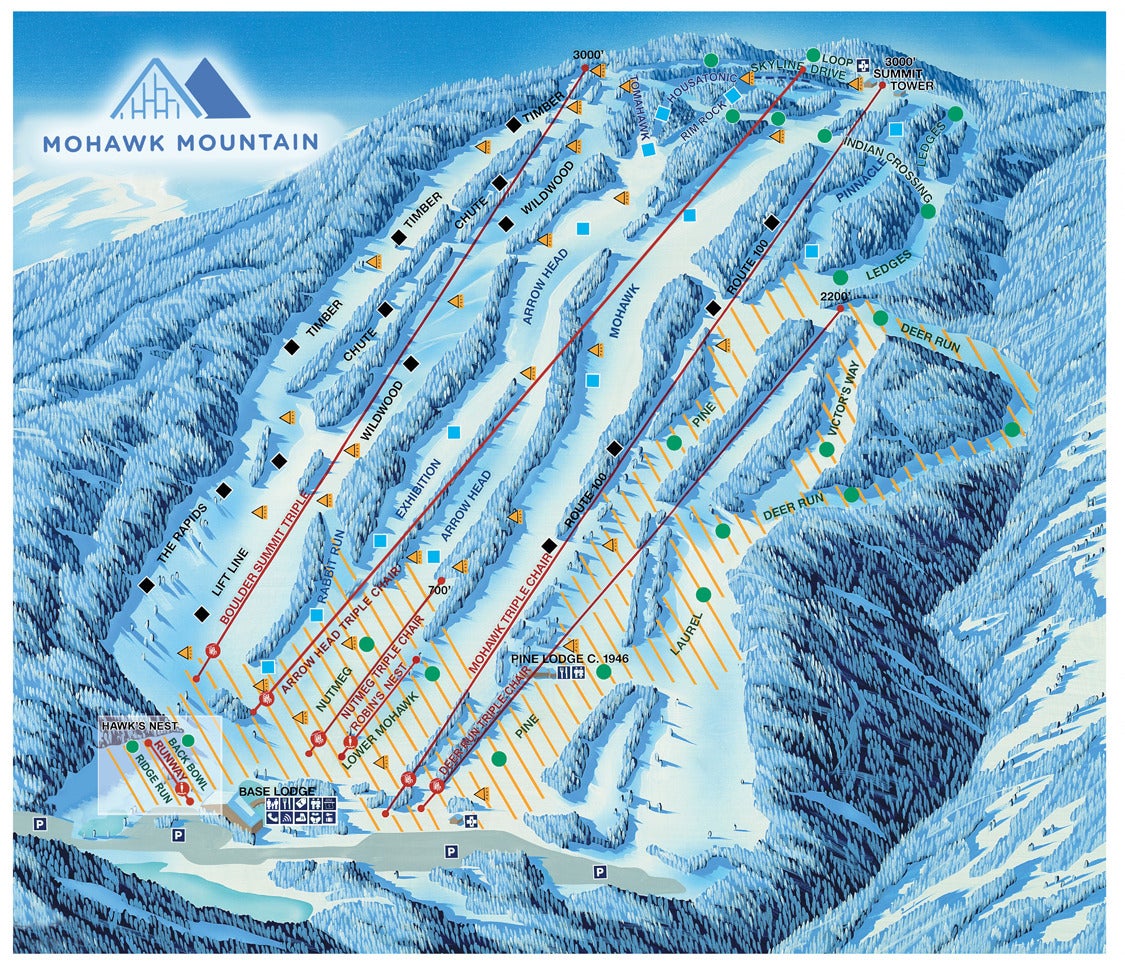 View the trails and lifts at Mohawk Mountain with our interactive trail map of the ski resort. Plan out your day before heading to Mohawk Mountain or navigate the mountain while you're at the resort with the latest Mohawk Mountain trail maps.