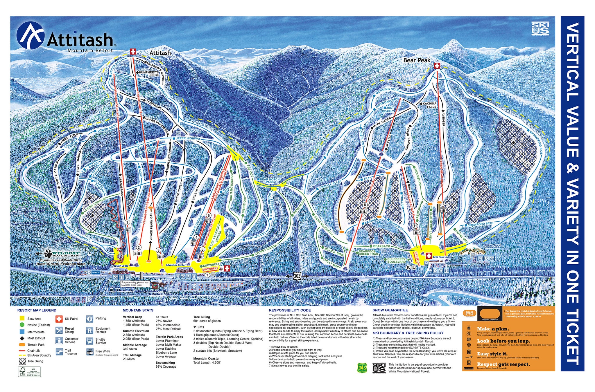 View the trails and lifts at Attitash with our interactive trail map of the ski resort. Plan out your day before heading to Attitash or navigate the mountain while you're at the resort with the latest Attitash trail maps.